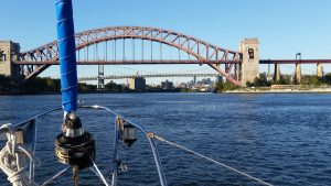 Keep two things in mind when planning your departure from City Island to transit the East River and Hell Gate. One, you need to pass through Hell Gate on the EBB, at flood is as much as 5+k of current here. Two, it is deceiving but the distance from Throgs Neck Bridge down the East River to Gravesend Bay is 28 miles. You really don’t want to be passing the south end of Manhattan or transiting any portion of New York Harbor in the dark, allow plenty of time for a daylight transit.