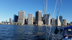 When you get to the Southern end of Manhattan bear left for the Buttermilk Channel that runs between Long Island and Governors Island. You can go right at the end of Manhattan and round the Battery into the Hudson River and NY harbor itself but you will be dealing with the Staten Island Ferries (they don’t like to give way to little sailboats) and commercial shipping of all sizes who also won’t get out of your way as they are restricted in maneuvering by their draft. Staying on the Long Island side of the harbor avoids most commercial shipping traffic.
