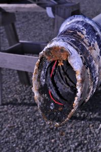 Dirt and debris in butt of mast that hadn’t been unstepped in a number of years, the debris held water which contributed to the damage