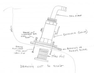 The drawing shown here shows the various parts of a properly installed seacock/thru-hull/tail piece. The one item not shown is a grounding or bonding wire, I will discuss more about this item later.